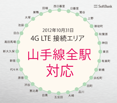 ソフトバンクモバイルは、10月31日、アップルのスマートフォン「iPhone 5」の発売に合わせて高速データ通信サービス「SoftBank 4G LTE」について、JR東日本の山手線全29駅(ホーム中央付近で計測)で利用できるようになったと発表した。