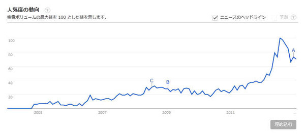 2004年ごろに誕生したとされるこの言葉、人気の検索ワードを調べるウェブサービス「Googleトレンド」で見てみると、2011年から急激に検索数が増え、いま現在も高水準で推移している。また、喪女をテーマにした漫画(後述)のアニメ化が発表されるなど、世間への露出も目に見えて増えてきた。