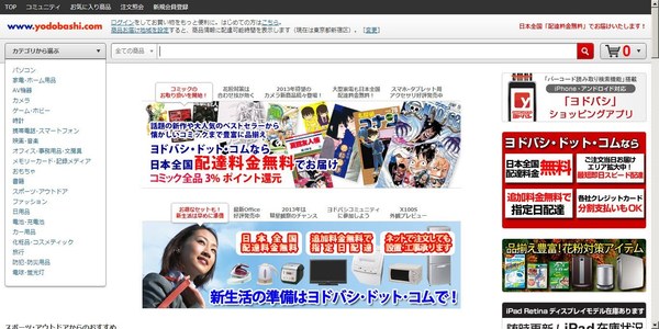 電化製品だけだと思っていたら大間違い。「ヨドバシ.com」は1998年にスタートした、家電量販店業界第4位(2012年現在)・ヨドバシカメラのネットショッピングサイト。以前は、店舗と同様に、家電やCDなどを中心とした品ぞろえでしたが、現在では、日用雑貨、消耗品、自転車などのスポーツ用品、書籍に化粧品、そしてファッションアイテムまでもそろう、総合ショッピングサイトへと拡充しています。