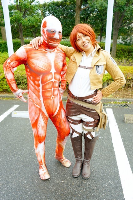 午後になってコスプレイヤーたちがちらほらと集まりだし、「けものフレンズ」や「進撃の巨人」など、さまざまな作品のキャラクターのコスプレがみられたほか、同じ作品のコスプレイヤーがあつまる「合わせ」も各所で行われ、「VOCALOID」KAITOのコスプレイヤー同士で集まるといった合わせも。みんな楽しそうに過ごしていました。