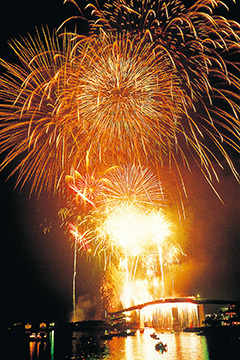 ★【水中】水中花火を実施 ★【海】海辺で行われる ★【音楽】音楽と連動した花火が打ち上がる ★【万発】1万発以上打ち上がる ★【滝火】仕掛け花火(ナイアガラ)実施 ★【競技】花火コンクール(競技会)実施 ★【川湖】川畔や湖畔で行われる