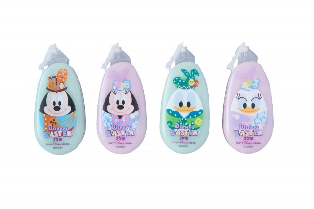 ミッキー、ミニー、ドナルド、デイジーがデザインされたパステルカラーがかわいいテープのり4点セット。