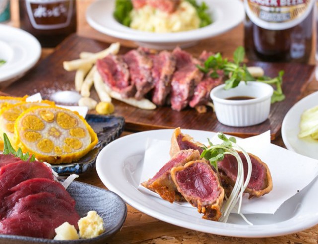 「大衆馬肉酒場ジョッキー」では、熊本直送の新鮮な馬肉を馬刺しはもちろん、ステーキや馬肉を使用したおつまみなど、心行くまで馬肉を堪能することができます。また、居酒屋定番メニューも25種類以上揃っています。