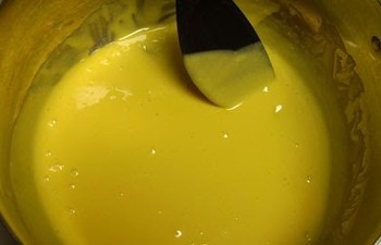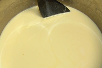 これを1リットルの牛乳を少し入れて混ぜ、また少し入れて混ぜる……と繰り返していくと、