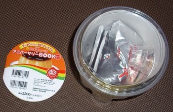 まずこのフタ部分に乗っている約25ページの円形のパンフレットが本にあたる部分。1972年からの歴代パッケージ図鑑や製造工程、その他色んな秘密が書かれているぞ。