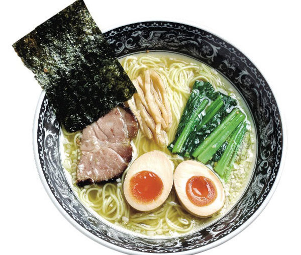 地鶏やゲンコツなど、鶏をあますことなく使ったスープに秘伝の塩ダレでコクをプラスし、あっさり仕上げた極上の一杯。トッピングにはスパイスで風味付けした蒸し鶏チャーシューがのる。