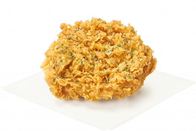 「サクサク骨なしケンタッキー<芳醇チーズ衣>」は、オニオンとコンソメなどで味つけしたジューシーな骨なしの国内産鶏胸肉に、パルメザンチーズが隠し味の“サクサク衣”をまとわせ、黒胡椒やゴーダチーズ、パセリなどをふりかけ、食欲そそる香りと味わいに仕上げた新チキンです。