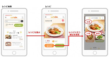 献立提案では、献立としての栄養計算だけではなく、季節、和洋中のジャンル、調理効率(食材・調理器具の数)など、料理する際に考慮しなければならないポイントが要素になっている。AIによって、彩りや味のバランスなどの数値や言語であらわせない感覚的な要素を含めた精度の高い献立提案も可能としている。さらに、従来は約1000レシピのなかから2品を組み合わせた献立提案に限られていたが、今後は約1万レシピのなかから3品を組み合わせた献立を提案することができるようになった。献立提案以外にも、「料理の基本」「テーマ別 健康と食情報」など、日々の料理に役立つコンテンツも揃えている。