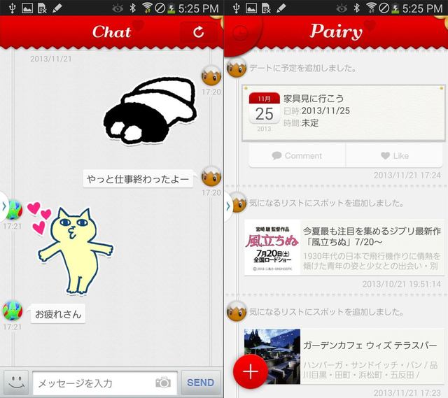 カップル専用アプリとなっていて、お互いのスケジュールをチェックできたり、デートの予定を組み立てたり、チャット機能で会話を楽しんだり。いわば2人だけのSNSです。