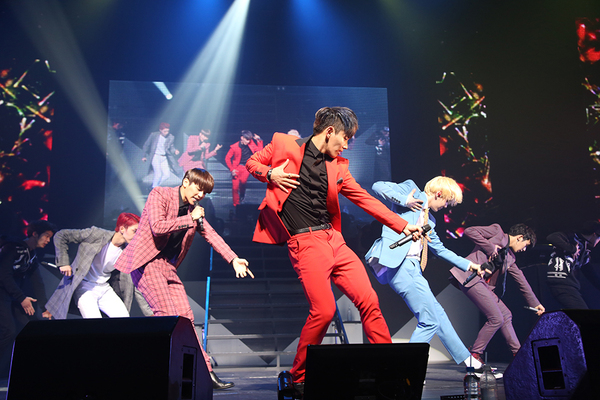 白い幕に、5人のシルエットが浮かぶと沸き上がる歓声。幕が落とされると、ステージ上段にメンバーが現れ、ダンスチューン『MIRACLE』でエンジンをかける。そして、溢れんばかりの熱気と興奮の中、『Anonymous』『PARI PARI(「그까짓거」Japanese ver.)』『Adrenaline』など6曲でオープニングを盛り上げた。