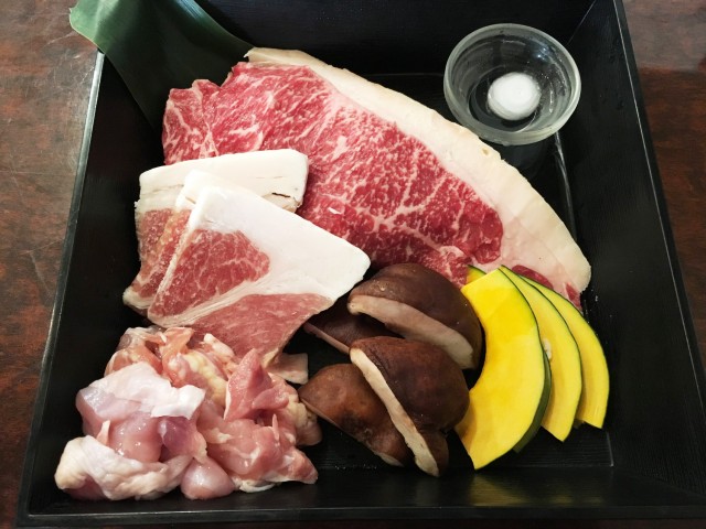 黒毛和牛(この日はサーロイン)、炭美豚、鶏肉のセットだ。これを食べ終えたら、牛肉、豚肉、鶏肉の中から好きな肉や部位などを注文しよう。