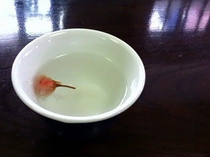 最初に桜湯が供されます。お茶はあとで甘味と一緒に。