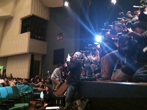 いい瞬間を撮ろうと撮影に群がる取材陣拡大画像表示
