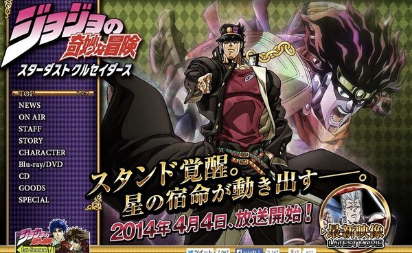 ジョジョの奇妙な冒険 スターダストクルセイダース (4月4日より TOKYO MX、毎日放送など)