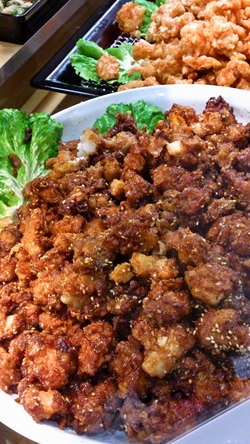皮までカリッと揚がった、ジューシーな鶏の唐揚げ。
