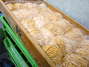 黄色味の強い麺色と極太さが特徴的