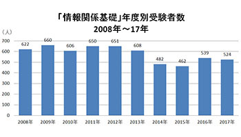 センター試験「数学2」のうち、プログラミングを含む「情報関係基礎」は平均で500~700人が受験している