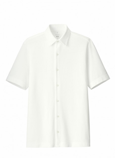 エアリズム素材の前開きポロシャツ。襟の形を細くし、背中にダーツを入れているため、ビジネスシーンでも活躍。フルオープンなので、Tシャツの上に羽織ってもいいですね。