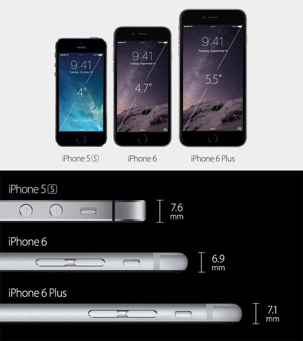 薄さで選ぶならiPhone 6、軽さで選ぶならiPhone 5s、ド迫力大画面ならiPhone 6 Plusというところでしょうか。