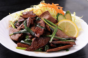 きも焼き 840円 肉の部位や質によって味を変えるというトンテキソースで豚のレバーを炒める。味が濃く臭みがないので食べやすい 拡大画像表示