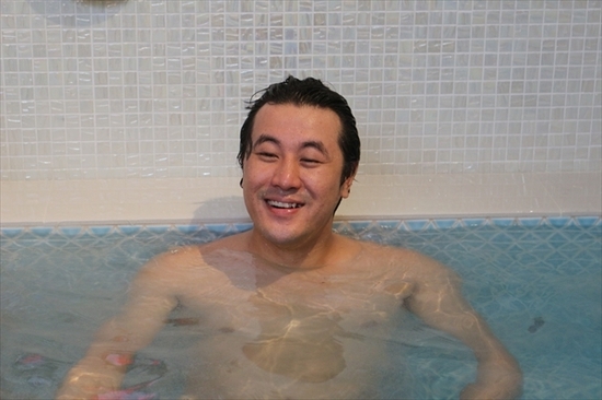 ヨッピー「炭酸泉だともともとは大分県の長湯温泉が有名なんだけど、最近は導入する銭湯も増えてきているみたいよ。この近くだと表参道の清水湯にも炭酸泉が導入されているね。清水湯も改装してキレイだし、場所柄、芸能人とかが利用することも多い。僕、吉本の芸人さんたちと何回かでくわしたことがあるけど、その人たちも炭酸泉にはゆっくり浸かっていたわ。導入するところが増えているっていうのは、導入するコストがそんなにかからないという利点があるのかもしれないね。このお湯が38℃なのに寒く感じないのも、炭酸ガスの効果で普通のお湯より2~3℃くらい体感温度が上がるからだろうし、お湯に浸かっている部分だけ肌が真っ赤になってるでしょ。これって血行がよくなっているからじゃない!? 炭酸泉は10~15分くらいゆっくり浸かっているのがいいって言われてるから、温度を低めに設定しているところが多いね。炭酸泉を導入した銭湯だと、おじいちゃんが昼間っからぼんやり浸かっている姿を見ることが多いわ」