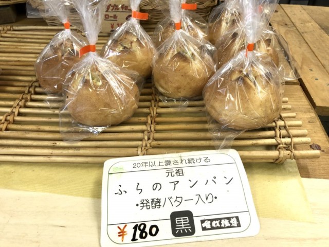 店頭にも書いてあった“ふらのアンパン”。20年以上人気の商品だそうです。この前に立ち寄ったお店ですでにあんぱんを買ってしまっていたので、こちらのお店では日持ちのするパンを買うことにしました。