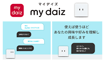 最新のスマホには、OSと連携した音声認識AIアシスタント「Siri」や「Google アシスタント」が入っているが、「my daiz」は、基本的にキャラクター側からアクションを起こすため、率先して新機能や新アプリを使わない、受け身なスタンスの人でも使い始めやすい。さらに音声操作に加え、タッチ操作やテキスト入力など、通常のスマホと同じ方法でも利用できるため、電車内や待ち時間など、スキマ時間にさっと使える。ターゲットは全世代だが、とくに使って欲しい層としては、スマホを初めて使う初心者やシニア、共働きで子育て中の忙しい母親などを想定して設計したそうだ。