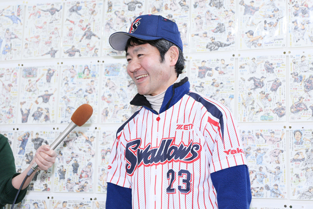 残念ながらスワローズは2年連続で最下位という成績だったが、ながさわたかひろ本人の2015年はどうなるのか? 個展開催初日の囲み取材に潜入した。
