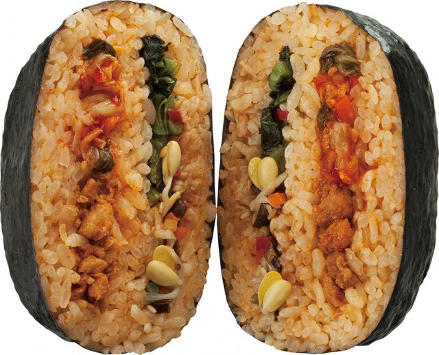 焼肉店でおなじみのビビンバを、ワンハンドで表現したばくだんおにぎりです。中具には、キムチや小松菜ナムルに加え、ピリ辛と甘みの強い2種類のコチュジャンを使用。味の変化も楽しめるおにぎりです。