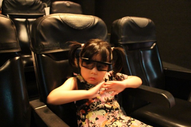 舌をこちらに出してペロペロと舐めてくるティラノザウルスの姿は、迫力十分! あまりのリアルな息遣いに、娘は怖くて3Dメガネを外してしまうほど。