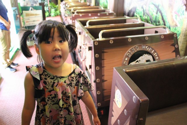 トロッコには恐竜のマークがデザインされていて、娘のテンションも上がります。