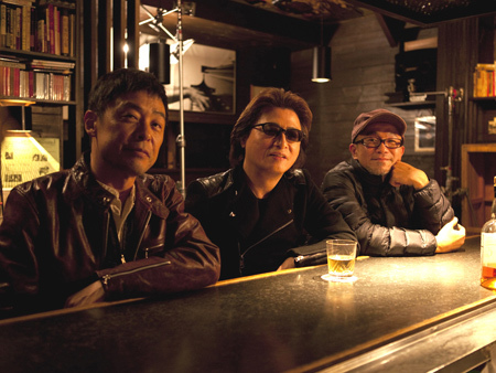 左より短編映画作品『ヤキマ・カナットによろしく』に出演の光石研、甲斐よしひろ、青山真治監督