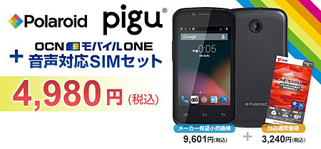 スマートフォン「Polaroid pigu」と「OCN モバイル ONE音声対応SIM」を提供