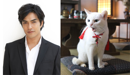 北村一輝と玉之丞役のあなご (C)2015「続・猫侍」製作委員会