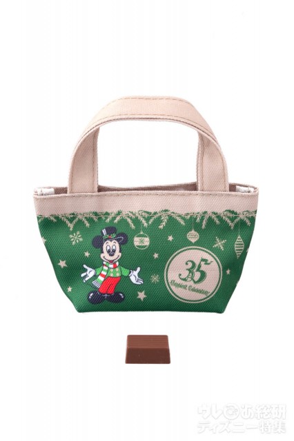 東京ディズニーリゾート35周年“Happiest Celebration!”のロゴがプリントされたグリーンのバッグ入りです。