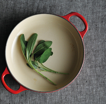 小さなフライパン兼オーブン皿として使えるル・クルーゼの両手浅鍋。焼いた肉を休ませながら保温するのにも最適。