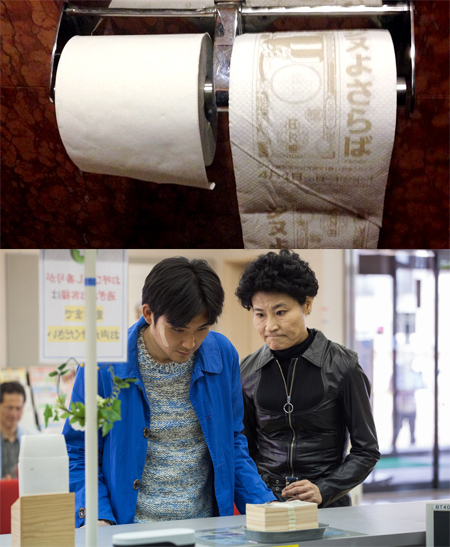 このトイレットペーパーは、本作のタイトルにちなみ、“ジヌ(お金)”と決別することを劇場来場者にも体験してもらうためにつくられたもので、お札風のオリジナルイラストがプリントされている。現在、新宿ピカデリーほかMOVIXの本作の上映劇場に設置中だ。