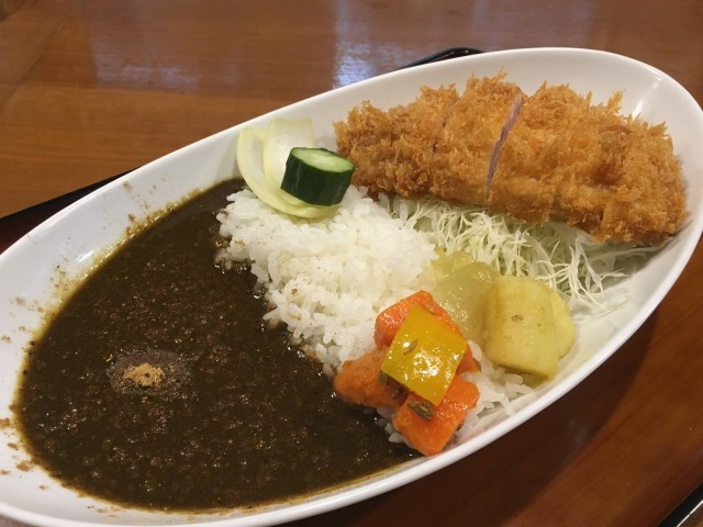 ジーエスのカレーは、いわゆるブラックカレー。ホットではないが、スパイシー。味の決め手はスリランカ産スパイスにある。