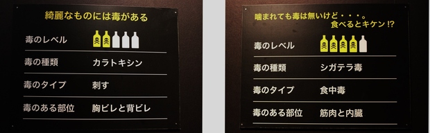 生き物が持っている毒についての解説があり、毒の種類、タイプ、毒がある部位の他、毒のレベルも知ることが出来る。
