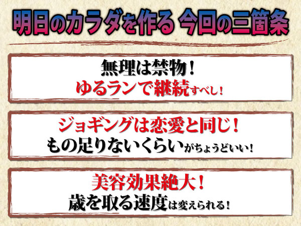 高山「わたし思うんですけど、歳を取る速度って、本人の努力次第で変えられるんですよ。ジョギングは特に、年齢の変化を最初に感じる部分に効果があるから、良いと思いますね」