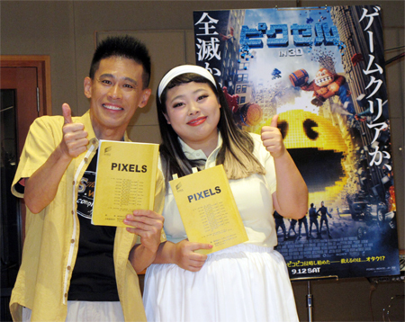 ゲームキャラクターが地球を侵略する米映画『ピクセル』の公開アフレコが7月9日に、都内で行われ、日本語吹替え版で声優を務める柳沢慎吾と渡辺直美が出席した。柳沢はアダム・サンドラー演じる主人公で、ゲームの元世界チャンピオン役。渡辺は劇中に本人役で登場するテニス選手のセリーナ・ウィリアムズを演じている。