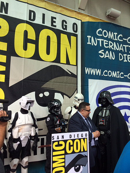 近年、より会場の大きいアナハイムやロサンゼルスへの移転話が出ていたものの、2018年まではサンディエゴで開催するとの決定が先日発表されたばかりで、今年は『スター・ウォーズ/フォースの覚醒』や、『バットマンvsスーパーマン ジャスティスの誕生』をはじめとしたDCコミック、ジョー・ライト監督ヒュー・ジャックマン出演の『PAN~ネバーランド、夢のはじまり』、クエンティン・タランティーノ監督の最新作『The Hateful Eight(原題)』などのパネルディスカッションが予定されている。