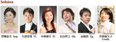 出演するソロイスト達の顔ぶれは、ヴァイオリンに東京都交響楽団ソロ・コンサートマスターの矢部達哉、フルートに同楽団の小池郁江、オーボエに同楽団首席奏者の広田智之、トランペットに同楽団首席奏者の高橋敦、そしてソプラノに澤畑恵美、チェンバロに曽根麻矢子。それぞれ日本を代表するプレイヤーだ。またソロイスト達を支える弦楽アンサンブルも、東京都交響楽団の弦楽セクションを中心とした腕利きのメンバーで構成されている。