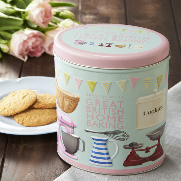 生姜の風味がピリッときいた「ステムジンジャー&レモン」とオーツ麦の素朴な味わい「クランブリーオーツ」の2種類のビスケットが入っています。ホームベーキンググッズが描かれたパステルカラーの缶は、ディスプレイや小物入れとしても使うことが出来そうです。