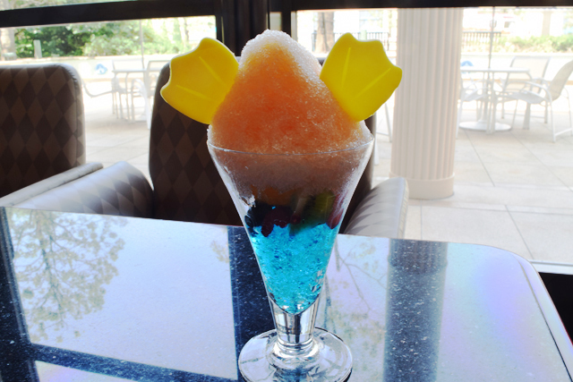 2015年7月18日から8月31日までハイピリオン・ラウンジで提供されている「オリジナルシェイブアイス」は、ミニーとドナルドをイメージしたもの。