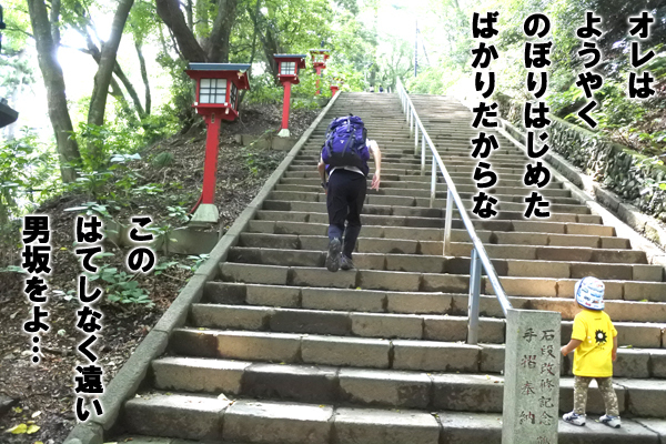 女坂はゆるい坂ですが、男坂は108段の階段を上ります。僕はもちろん男坂を選びました。
