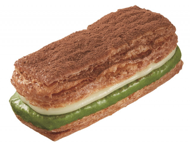 サクサク食感のデニッシュ生地に、祇園辻利の宇治抹茶を練り込んだ宇治抹茶チョコと、マスカルポーネチーズクリームがサンドされています。
