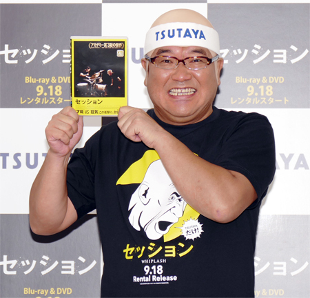 第87回アカデミー賞で3部門に輝いた『セッション』のブルーレイ&DVDレンタル開始PRイベントが9月14日に都内で行われ、タレントのカンニング竹山がTSUTAYA応援隊長として出席。本作で助演男優賞を受賞したJ・K・シモンズ演じる“キレキレ”の音楽教師にちなみ、十八番のキレ芸を交えながら本作をアピールした。