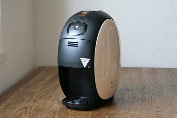 使用するコーヒーマシンは「ネスカフェ ゴールドブレンド バリスタ」。丸みを帯びたモダンなデザイン。後ろが給水タンクで、コーヒーは上部のパーツを取り出して補充することができます。狭いキッチンでも使いやすそうなコンパクトサイズです。