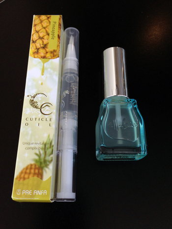 写真は、人差し指と中指にトップコートとキューティクルオイルを塗り、薬指と小指は自然のまま。どちらが「モテ手」(モテ指?)か、一目瞭然ですね!